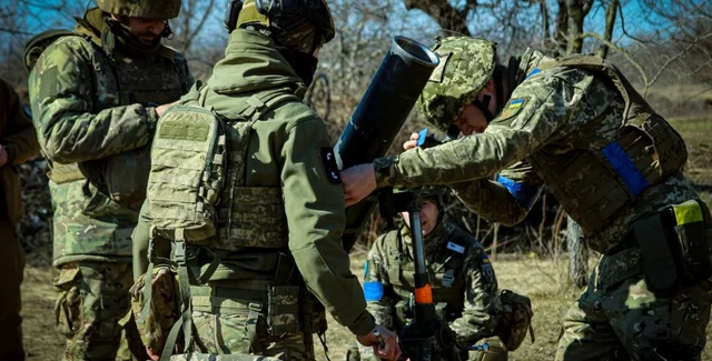 Минометный расчет одной из отдельных горно-штурмовых бригад ВСУ отрабатывает навыки по стрельбе из американского миномета М120. Об этом сообщает АрміяInform.