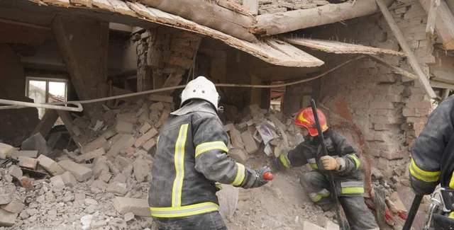 Спасатели разбирают завалы после обстрела 9 марта