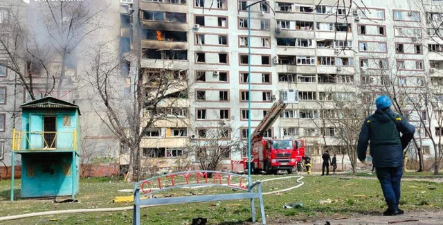 В сети начали появляться кадр моментом попадания ракеты по жилому дому с людьми в городе, а также последствия данного удара. В домах поблизости разбиты окна и балконы, а по всему району начал распространяться черный густой дым.