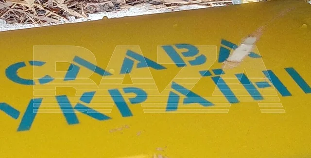 На опубликованных фото видно, что БПЛА разукрашен в желто-синие цвета, на одном из крыльев красуется надпись "Слава Украине".