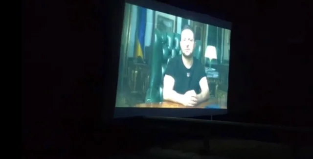 На границе в Житомирской области установлен большой проектор, на котором показаны все преступления, совершенные Россией после вторжения в Украину. Кроме того, наши бойцы также транслируют их обращение президента Владимира Зеленского.