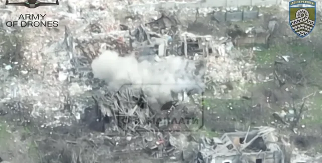 Бойцы ВСУ ударили по укрытию с оккупантами украинским дроном-камикадзе "Пегас" (видео)