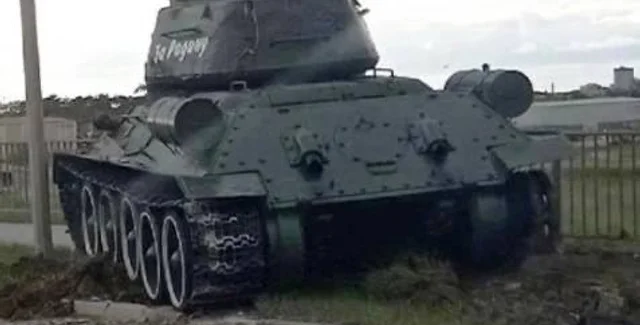 Российский танк Т-34 въехал в обочину | Фото: реки крыма