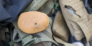 "Как всегда, выразительнее всего общую картину подчеркивают отдельные детали. Можно увидеть, как по касательной обломок или пуля продырявили каску, зато ее владелец выжил. А на последнем фото – хлеб. Пуля продырявила машину, рюкзак и застряла в хлебе. Другими словами, хлеб возможно спас жизнь воина", — написал журналист.