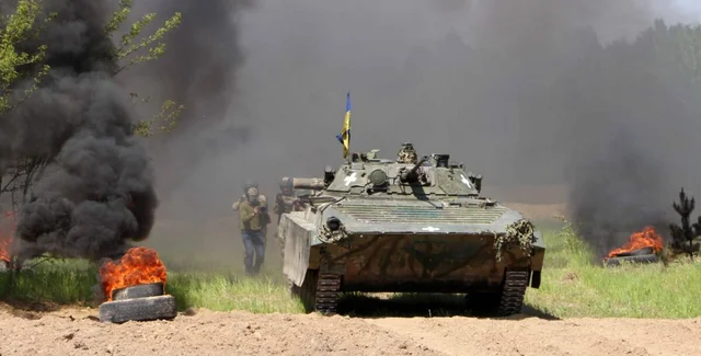 Украинские военные получают навыки действий вместе с другими механизированными подразделениями.