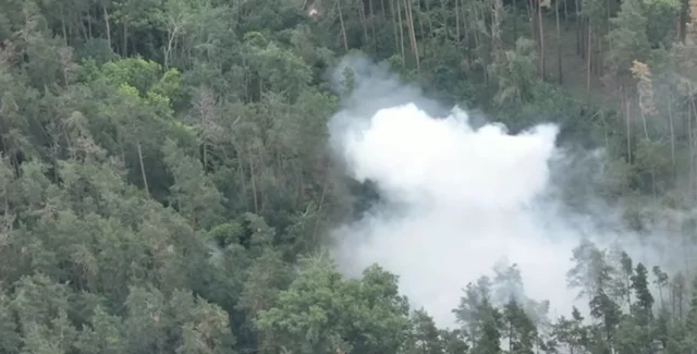 Меткий выстрел из 155 мм гаубицы FH70 позволил оставить россиян без танка, который был тщательно спрятан в лесу.