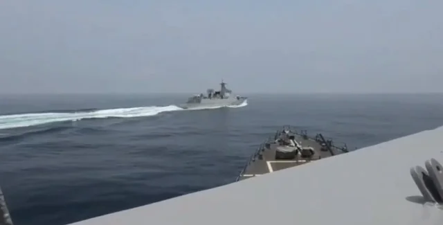 Китайский корабль Luyang III DDG 132 сближается с американским эсминцем | Фото: Скрин видео