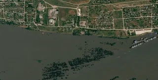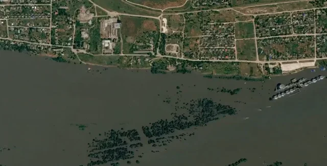 На опубликованных кадрах можно увидеть масштаб разрушений непосредственно на гидроэлектростанции, а также затопленные населенные пункты Новая Каховка, Отрадокаменка и Корсунка.