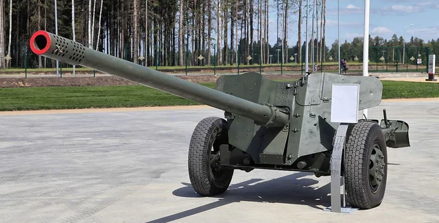 Советское буксируемое противотанковое орудие. Стреляет 100-мм бронебойными, подкалиберными, кумулятивными снарядами.