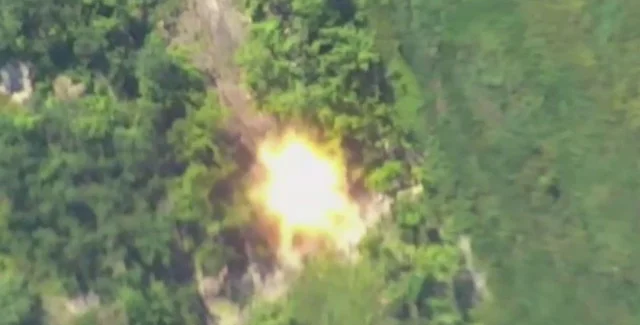 В подписи к видео оккупанты заявили, что им удалось нанести удар по "неугомонной артиллерийской установке" 66-й отдельной механизированной бригады Сухопутных войск ВС Украины.