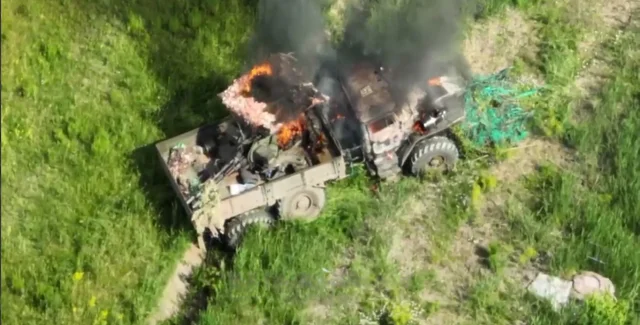 Украинские военные с помощью дронов уничтожили технику ВС РФ — грузовик УРАЛ с установленной на нем спаренной зенитной установкой ЗУ 23-2. Соответсвующее видеокадры опубликовали в телеграм-канале боевой группы К2 54 ОМБр в четверг, 15 июня.