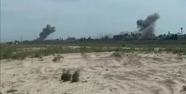 На кадрах заметно, что упомянутые здания почти полностью разрушены, видны следы пожаров.