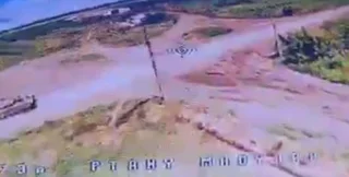 На видео тяжелая бронетехника врага пытается быстро двигаться по дороге, чтобы не попасть под обстрел украинских войск. Впоследствии дрон-камикадзе попал в башню танка. Локация, где прошла успешная ликвидация вражеской техники, не указана.