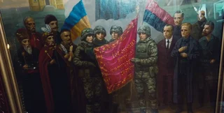 Руководитель ПЦУ Епифаний в Ровенской области освятил образ, написанный военным. На изображении якобы представлены выдающиеся лидеры украинского национального движения Степан Бандера, Роман Шухевич и Евгений Коновалец. Об этом сообщает в Facebook пресс-служба 104 бригады территориальной обороны Ровенщины.