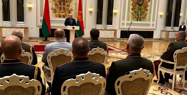 В начале мероприятия Лукашенко анонсировал вручение генеральских погонов нескольким работниками силовых структур и заявил, что вместе с погонами к ним добавляется "высочайшая ответственность за судьбу государства".