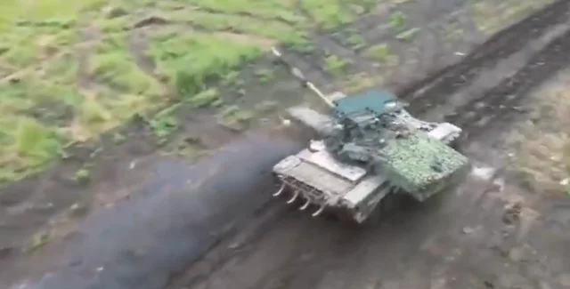 На башне российского танка Т-72Б установлены неизвестные конструкции, которые видимо, должны добавить защиты танку. Надстройка установлена в передней и задней части. Как предполагает Коваленко, россияне хотят улучшить защиту моторно-трансмиссионного отдела от поражения дронов.