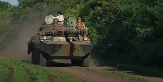 Командир машины Андрей говорит, что было страшно во время первого боя. Машина уже выполнила 6 боевых задач, из которых они 4 раза вели огонь. Позиция APWSK находится в 3-4 км от передовой, поэтому военные видят все поле боя перед собой, но иногда "прилетает" и рядом с ними.