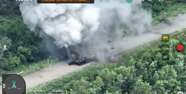 Дрон показал уничтожение российского танка под Бахмутом (фото)