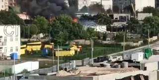 Через несколько минут опубликовали еще одно видео. На видео видно открытые языки огня, нескольких пожарных. Также было слышно минимум два взрыва.