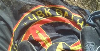Также он опубликовал фотографии с сорванным флагом ЧВК "Вагнер".
