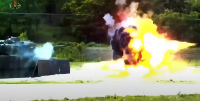 Военные Северной Кореи провели испытания комплекса активной танковой защиты (КАЗ) отечественного производства. На опубликованном 27 июля в YouTube видео, система срабатывает при подлете снаряда к неизвестному танку, на котором установлена КАЗ.