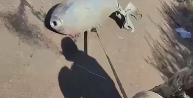 На видео можно увидеть, что защитники тянут управляемую авиабомбу КАБ. Их сбрасывают с расстояния в несколько десятков километров от украинских позиций и корректируют их полет.