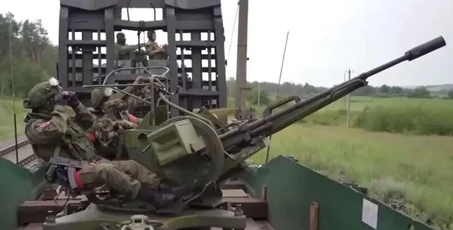 Зенитный артиллерийский комплекс ЗУ-23-2 на российском бронепоезде | Фото: Скриншот