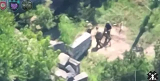 На опубликованных кадрах видно, как российские захватчики обустроили склад БК на берегу Днепра, а солдаты прямо рядом с ящиками с боеприпасами заряжают миномет. За этим действом наблюдают с воздуха бойцы ВСУ. После этого они запускают туда дрон со взрывчаткой.