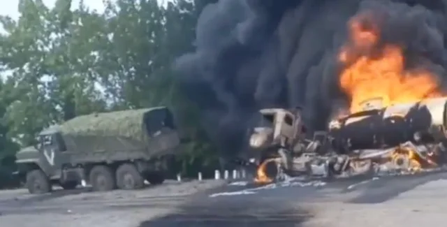 ВСУ уничтожили логистическую колонну российских военных. Соответствующее видео с "прилетом" 27 августа опубликовал в своем Telegram-канале военно-политический обозреватель группы "Информационное сопротивление" Александр Коваленко.