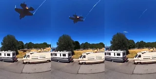 Самолет прошел настолько низко, что оператора чуть не снесло с машины, на которую он залез, чтобы увидеть F-35. Истребителем управляла майор Кристин Вулф.