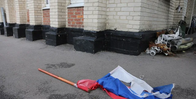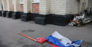 В российских пабликах утверждают, что парень снял флаг РФ и якобы топтал его ногами. Позже появилась информация о том, что его задержали.