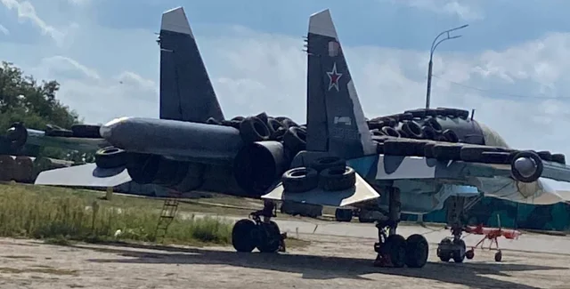 Российские военные самолеты часто стоят прямо под открытым небом, что делает их легкой мишенью для дронов-камикадзе или других средств поражения. По мнению оккупантов, покрышки должны хоть как-то защитить самолеты от ударов.