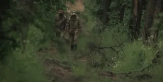 Осматривают территорию, обследуют военную технику. Например, в кадр попадает бронемашина, настолько разбитая, что невозможно сказать, чья она — ВСУ или ВС РФ. Вокруг — обломки ангара. Команда "На щите" осматривает местность, выискивая возможные тела.