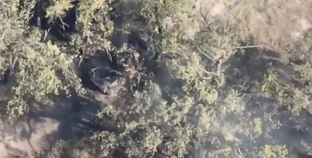 На видео бойцы зафиксировали вражескую технику среди густой растительности. Впоследствии украинские защитники применили FPV-дрон.