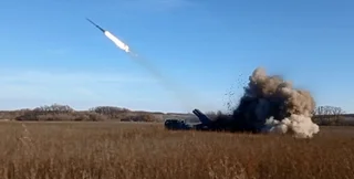 Две РСЗО "Буревій" и "Ураган" одновременно выпустили снаряды по позициям врага. По сообщению соцсетей, это произошло в Запорожской области.