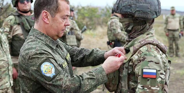 По данным росСМИ, бывший президент России посетил регион, чтобы проверить качество подготовки бойцов и условия службы военнослужащих ВС РФ по контракту.
