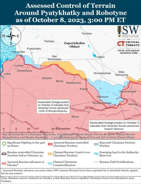 Вооруженные силы Российской Федерации пытаются не допустить продвижения Вооруженных сил Украины в Запорожской области. Об этом сообщили аналитики Института изучения войны в ежедневном отчете за 8 октября.