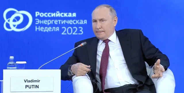 Путин принял участие в публичном собрании "Российская энергетическая неделя 2023", свидетельствует трансляция мероприятия. Сидя на сцене перед несколькими сотнями россиян, глава Кремля высказал несколько своих мыслей относительно газа и политики.
