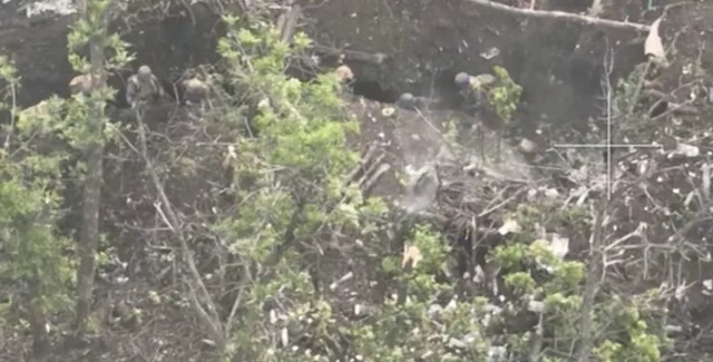 На видео можно увидеть, что захватчики пытаются прятаться в траншеях, которые были выкопаны среди растительности. Такое массирование не помогло оккупантам. Впоследствии по их позициям наносились удары.