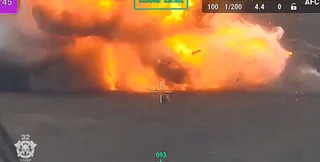 В Центре стратегических коммуникаций рассказали, что украинские военные остановили технику Вооруженных сил Российской Федерации, после чего смежное подразделение "Глаза" атаковало российский танк с помощью дронов-камикадзе, в результате чего устроили "масштабный фейерверк".