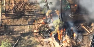Российскую военную технику и оккупантов зафиксировали в лесопосадке. Украинские военные нанесли точные удары, после которых в небо поднялся густой черный дым.