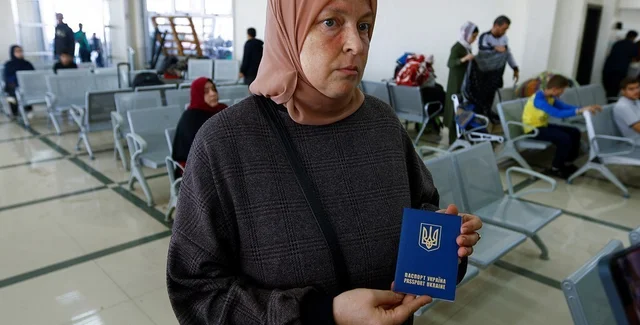 На опубликованных кадрах Татьяна Тапалова держит на руках своего ребенка и демонстрирует украинский паспорт у пограничного перехода Рафах у границы с Египтом.