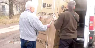 Затем другой холодильник дарят еще одной семье, которая осталась без "кормильца". На руках у вдовы осталось пятеро детей.