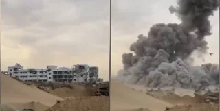 На опубликованных кадрах здание окутал черный дым, но устояло ли оно — неизвестно. За несколько дней до этого бойцы израильской армии сообщили о контроле над ним.