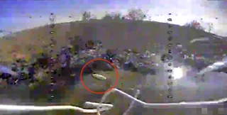 На видео можно увидеть, как беспилотник фиксирует вражескую лодку и подлетает к цели. Затем с другого ракурса видно взрыв и дым, который начинает подниматься после удара.