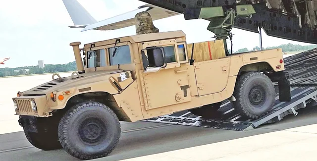 Командование военно-воздушных систем ВМС США опубликовало изображение с Humvee, на который установили пусковую установку для 70-мм ракет с лазерным наведением. Машину грузили на самолет С-17А Globemaster III на неизвестной базе. Комплексы передали Украине для борьбы с дронами.