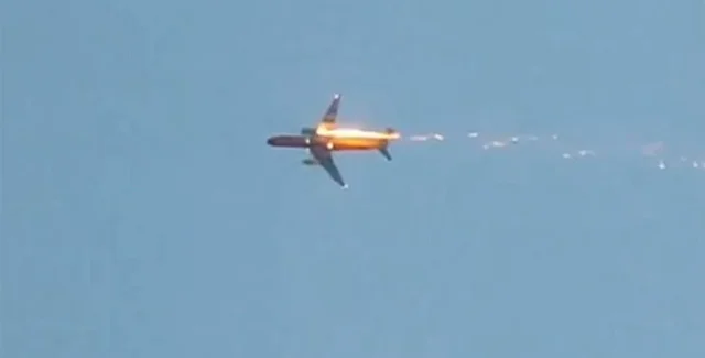 Подробностей он не раскрыл, но в сети опубликовали драматичные кадры того, как горящий лайнер оставляет след пламени в небе. Судя по всему, пилот Ту-204 сбрасывал топливо перед вынужденной посадкой — за лайнером тянулась длинная ярко-оранжевая полоса.