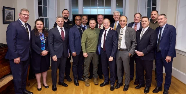 Украинский президент возглавил делегацию на встрече с руководителями оборонных предприятий США. Встреча состоялась в Украинском доме в Вашингтоне. Зеленский высоко оценил участие компаний в украинско-американской конференции оборонных индустрий, которая состоялась на прошлой неделе.