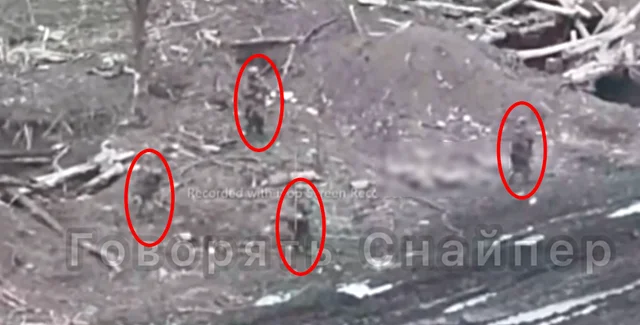 Украинский военный опубликовал кадры, на которых четверо, вероятнее всего, россиян расстреливают трех бойцов, которые были одеты в камуфляж, похожий на пиксель.