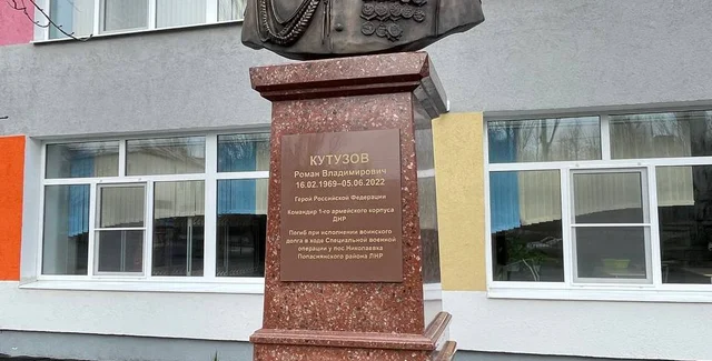 Еще одну мемориальную доску установили перед школой №7. Отмечается, что еще в июле ее переименовали в честь российского военного Романа Кутузова, который якобы "освобождал" город.